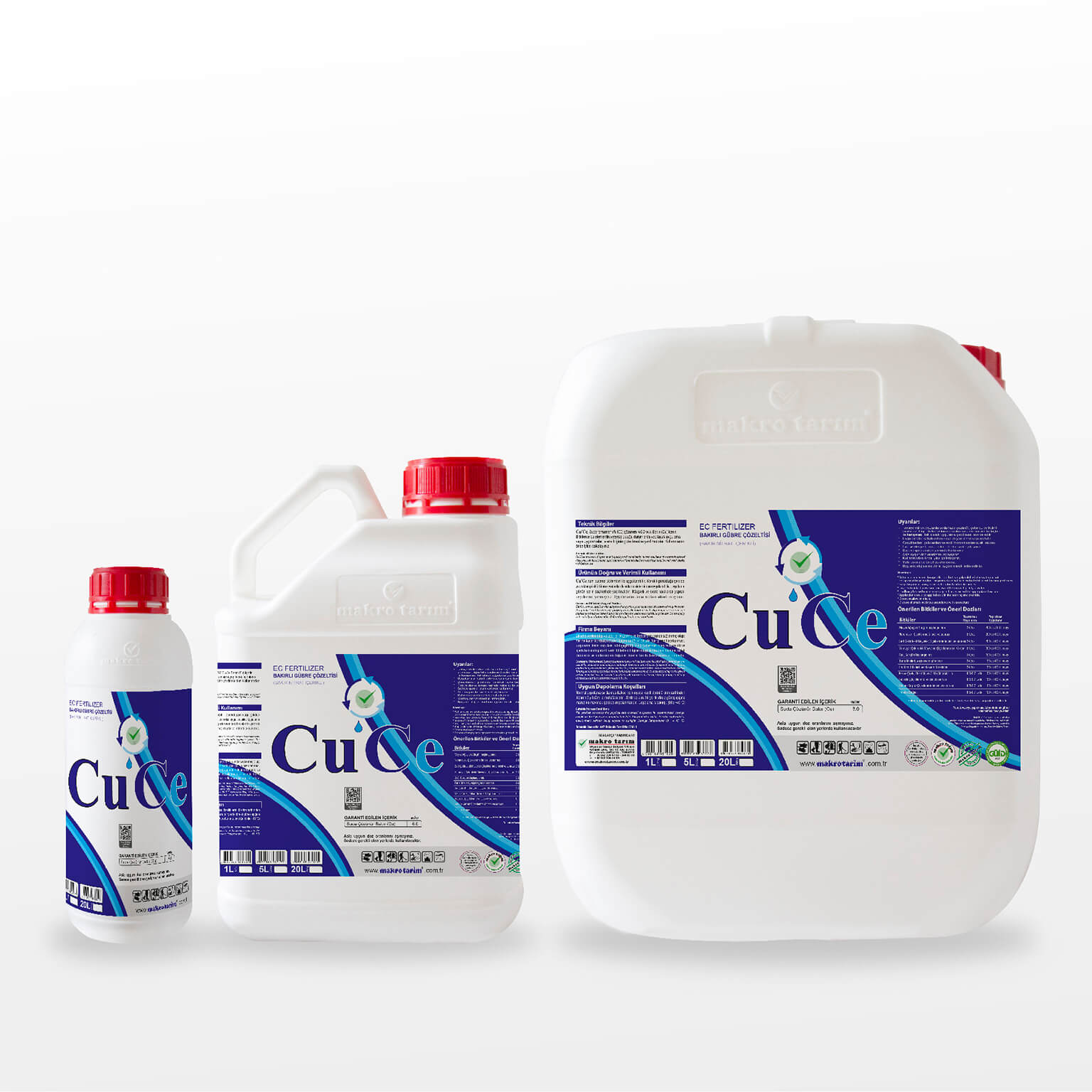 ÜRÜN HAKINDA: CuCe Cu'ce; Suda tamamen(%100) ve hızlı çözünen % 6,0 (w/w) Bakır(Cu) İçerir. Bitkilerde bu elementlerin yetersiz olduğu durumlarda yapılacak uygulama veya uygulamalar ile meyve verimini ve kalitesini arttırıcı etkiye sahiptir.
