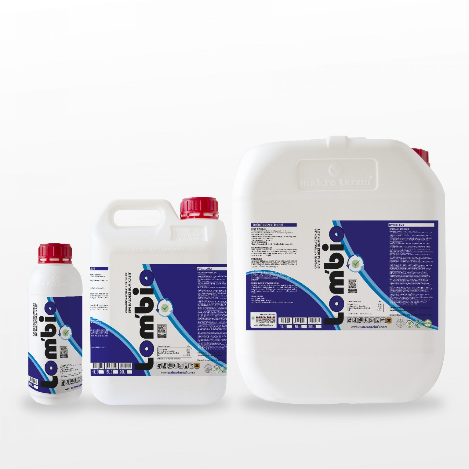 ÜRÜN HAKINDA: Ürün Hakkında: lom’bio; Leonardit kaynaklı Hümik+Fülvik asit içeren bir üründür. Toprakda bağlı bulunan ve bitik için yarayışlı olmayan bitki besin elementlerin yarayışlı hale getirerek bu elementlerin alınımının artışının yanında, toprağın yapısını iyileştirir, su tutma kapasitesi, havalanma ve mikrobiyal faaliyetlerde artış sağlayarak, bitkinin olumsuz koşullara (don, kuraklık, tuzluluk, yanlış ilaçlama ve tarımsal faaliyet vb.) karşı direncin ve toleransını arttırır. Ayrıca toprağın organik madde miktarını arttırır, Demir’ (Fe) alınabilir forma dönüştürerek bitkinin demir’den (Fe) daha fazla yararlanmasını sağlar. KDK (Katyon değişim kapasitesi) yüksek olduğundan gübrelerle birlikte kullanıldığında gübrelerin alınımına yüksek oranda katkı verir.