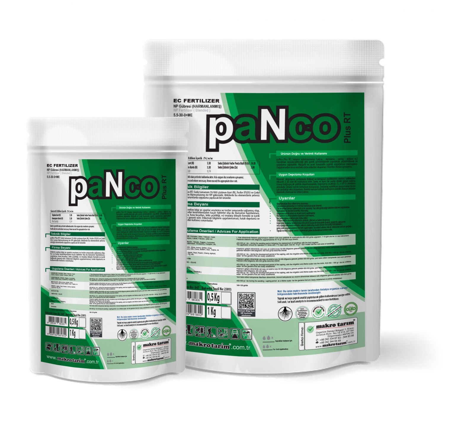 paNco; Suda tamamen (%100) çözünen Azot(N), Fosfor(P205) ve Çinko (Zn) içeren Harmanlanmış NP gübresidir. Bitkilerde bu elementlerin yetersiz olduğu durumlarda uygulama yapılacak bir üründür.